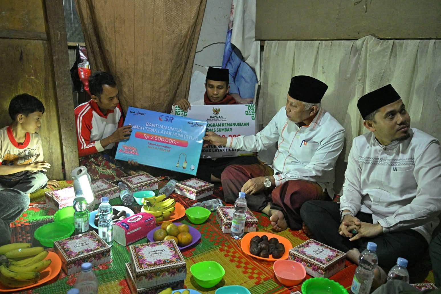 Dalam suasana Ramadhan yang khusyuk, Gubernur bersama Wakil Bupati Lima Puluh Kota dan jajaran Baznas melaksanakan sahur bersama keluarga tersebut. Pada kesempatan itu diserahkan bantuan untuk bedah rumah tidak layak huni, di antaranya Rp25 juta untuk rehab rumah dari Baznas Sumbar, paket sembako dari Pemprov Sumbar, bantuan CSR Bank Nagari sebesar Rp2,5 juta, tambahan Rp2,5 juta dari kepala SMA di Payakumbuh, Rp1 juta dari dari Bapenda Limapuluh Kota, serta Al-Qur’an.