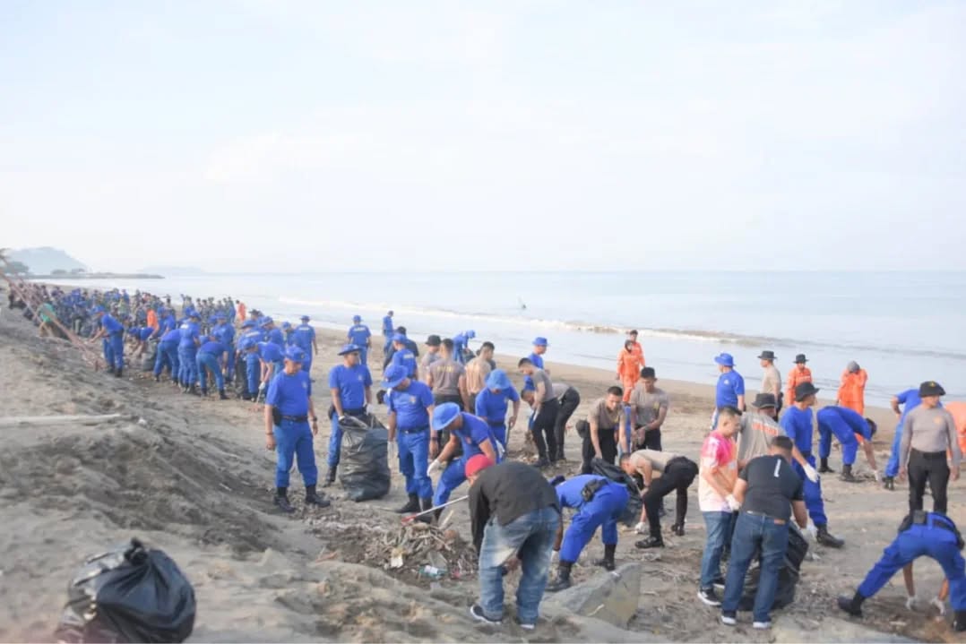 Tanggapi Instruksi Presiden: Polda Sumbar Gelar Aksi Korve Bersih-Bersih di Pantai Padang