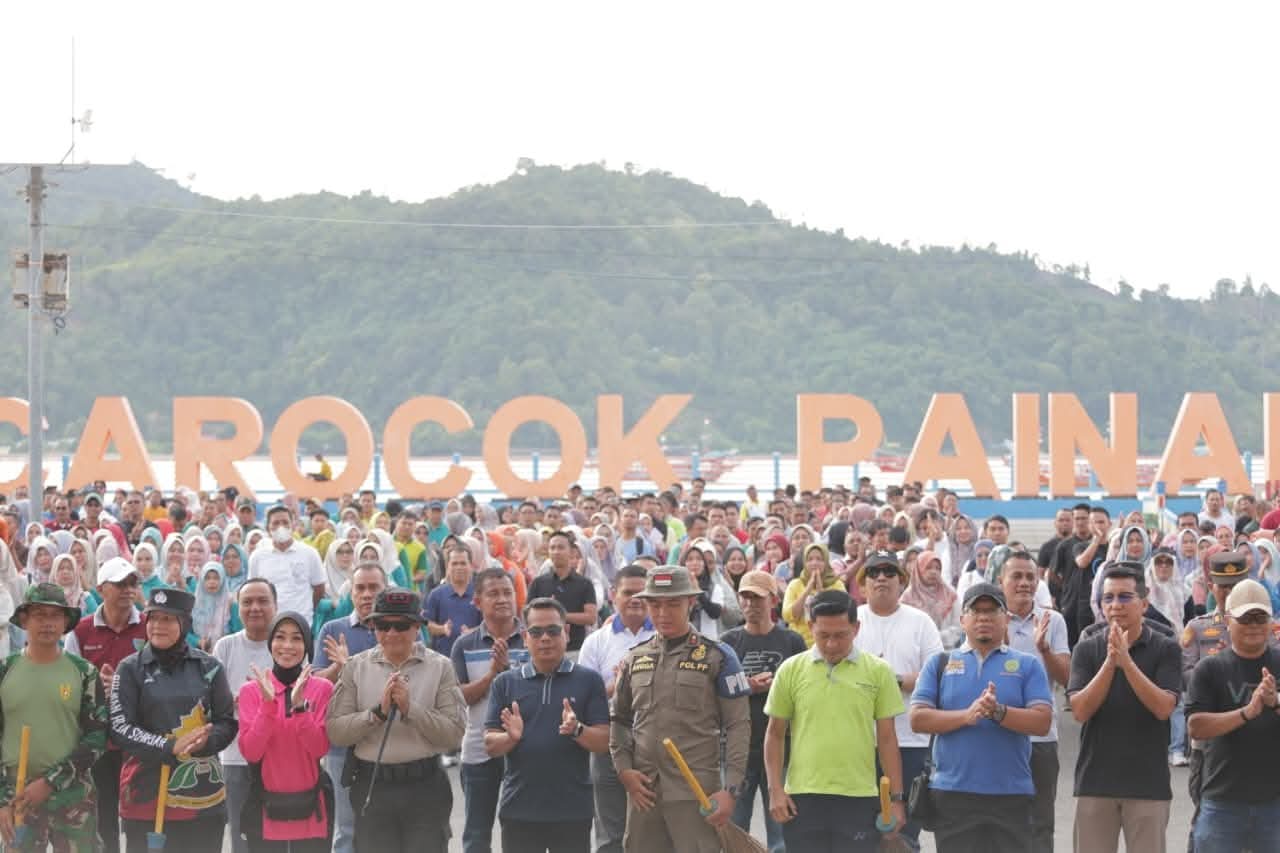 PESSEL, POLIKATA.COM- Pemerintah Kabupaten Pesisir Selatan melalui Dinas Perumahan Rakyat, Kawasan Permukiman dan Pertanahan serta Lingkungan Hidup (Perkimtan LH) menggelar gotong royong massal dalam rangka memperingati Hari Peduli Sampah Nasional (HPSN) Tahun 2026, Jumat (13/2/2026), di kawasan Pantai Carocok Painan hingga Muaro Painan.