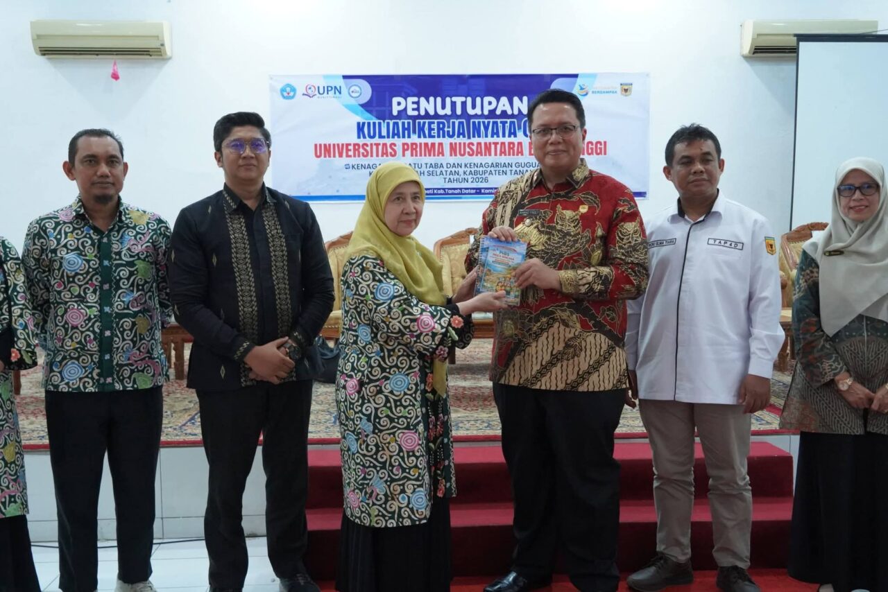 TANAH DATAR, POLIKATA.COM – Sebanyak 201 mahasiswa Universitas Prima Nusantara (UPN) Bukittinggi menutup masa Kuliah Kerja Nyata (KKN) Tahun Akademik 2025/2026 di Kecamatan Batipuh Selatan. Kegiatan tersebut ditandai dengan acara serah terima mahasiswa kembali dari lokasi pengabdian ke pihak kampus yang dilaksanakan di aula kantor bupati di Pagaruyung, Kamis (26/2/2026).